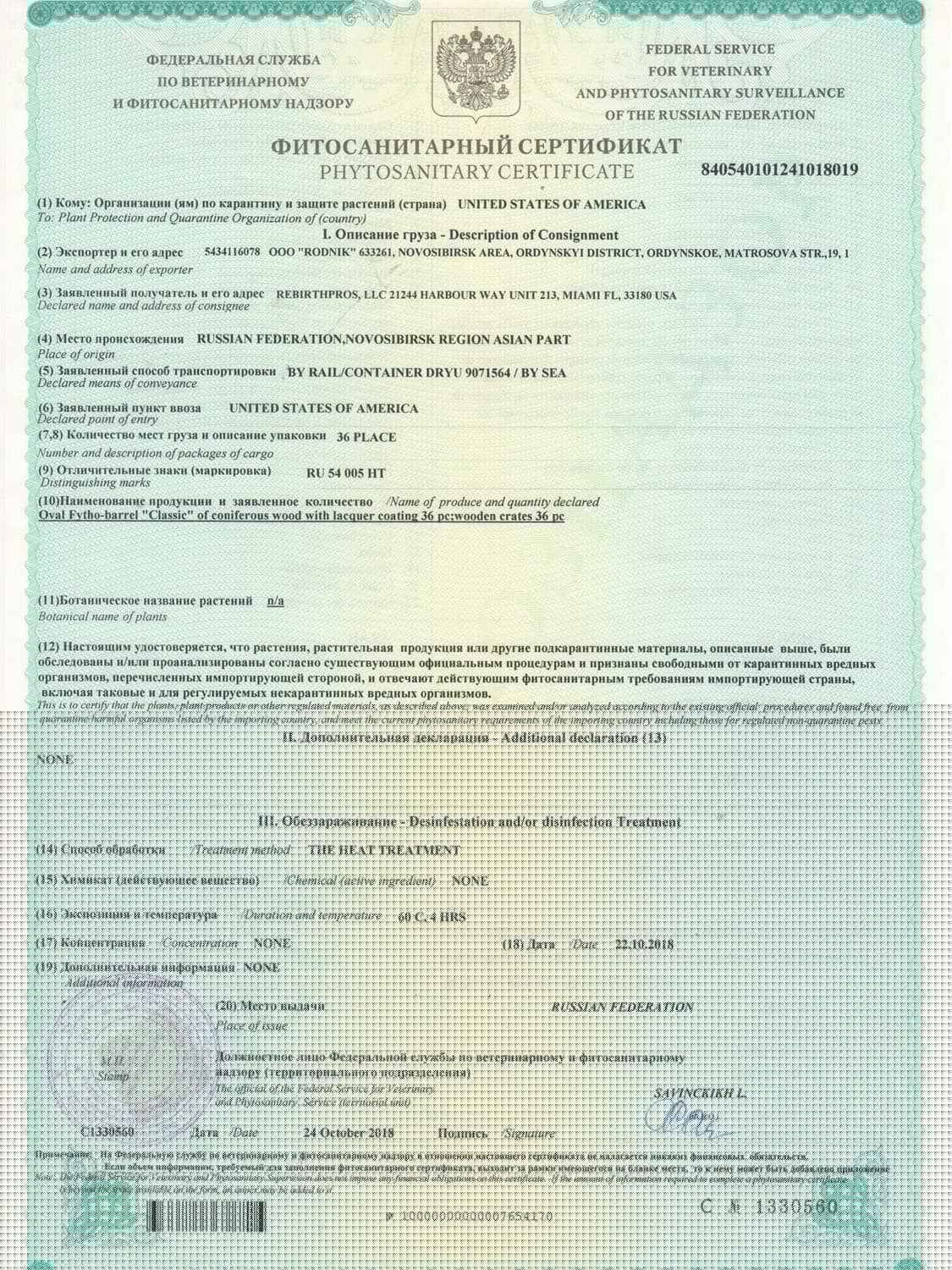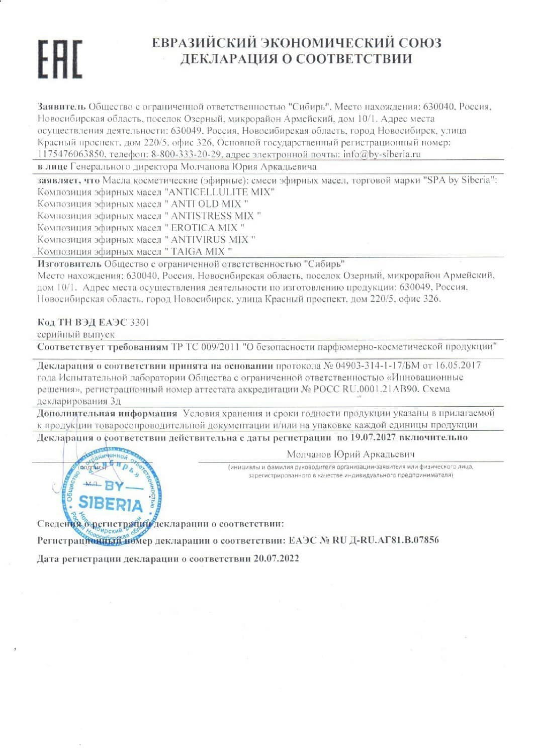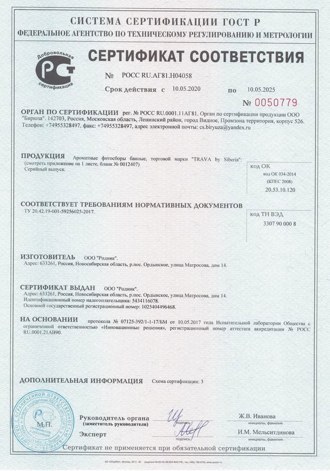 Сертификат подтверждает, что фитобочка соответствует стандартам качества, принятым в Евразийском экономическом союзе.