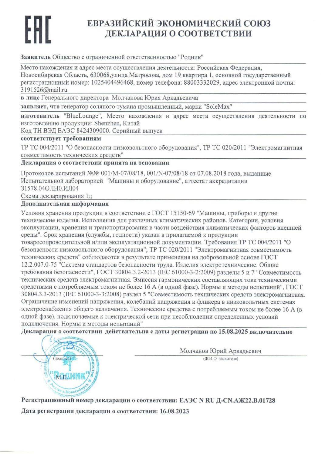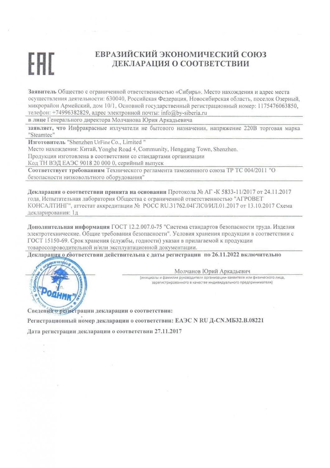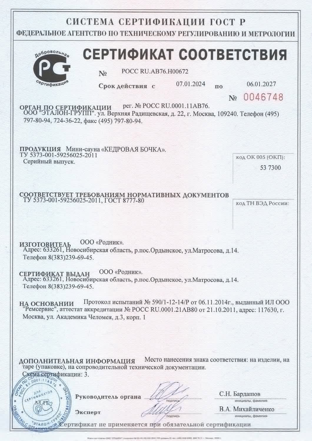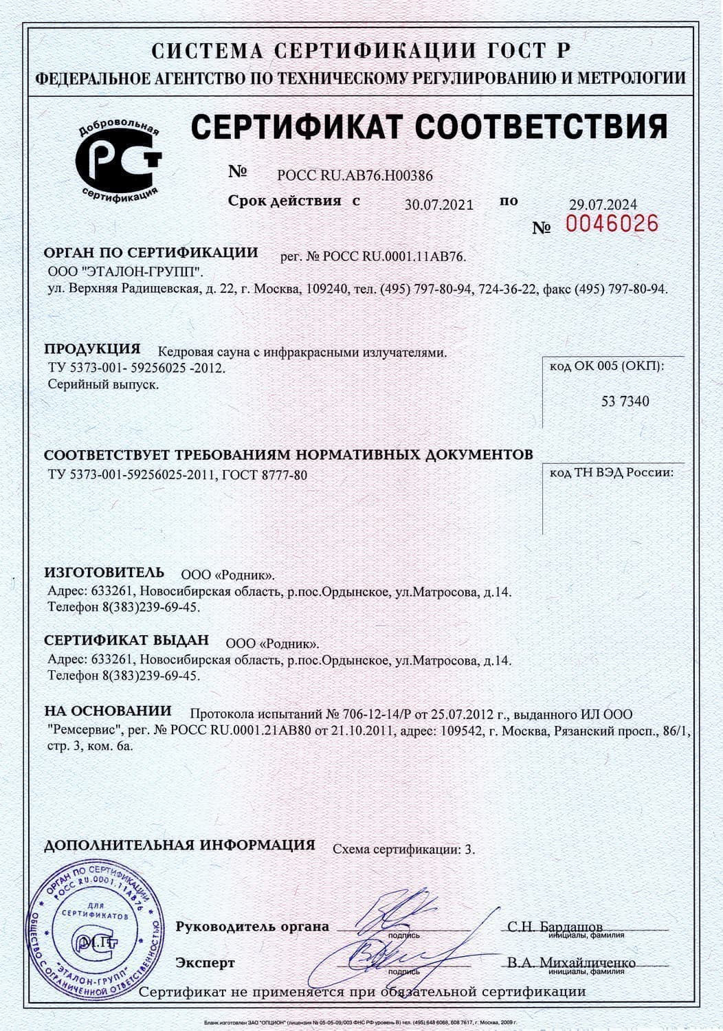 Сертификат подтверждает, что фитобочка соответствует стандартам качества, принятым в Евразийском экономическом союзе.